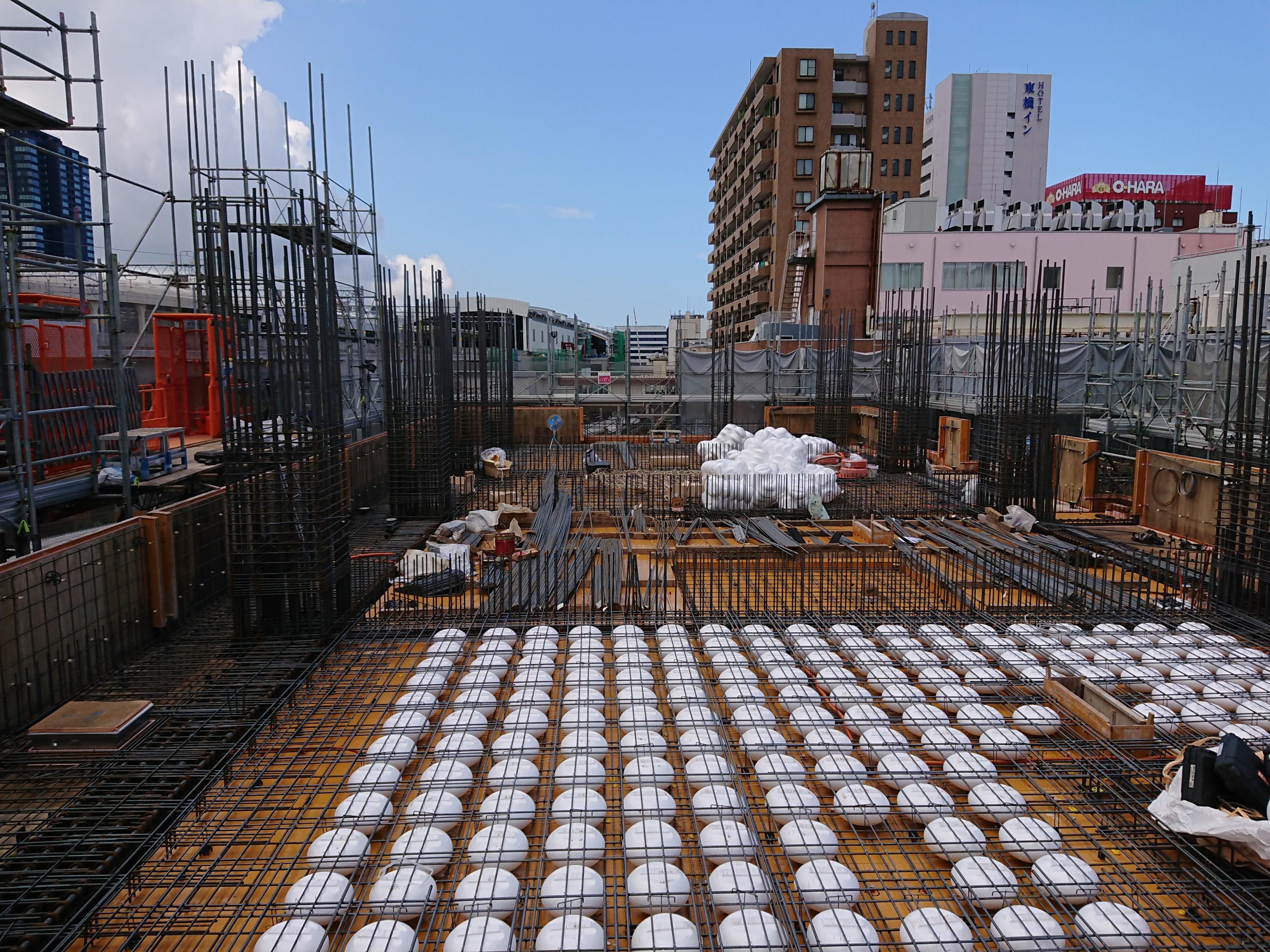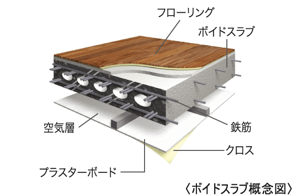 ボイドスラブ工法を採用し、強度を落とさず重量を軽減、